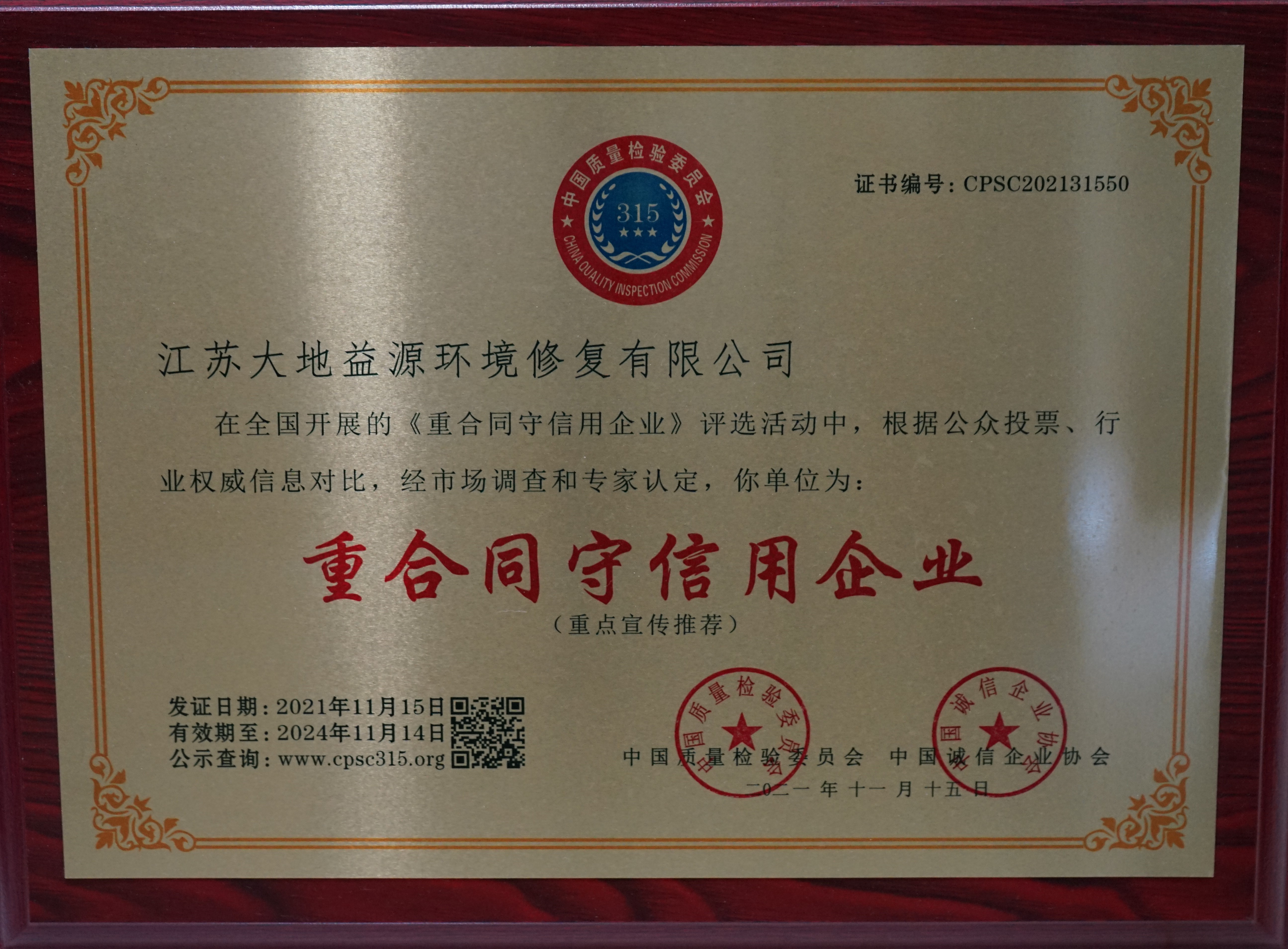 • 2024-1-30大地益源榮獲2023年度“固廢細分領域(土壤修復)領跑企業”榮譽稱號